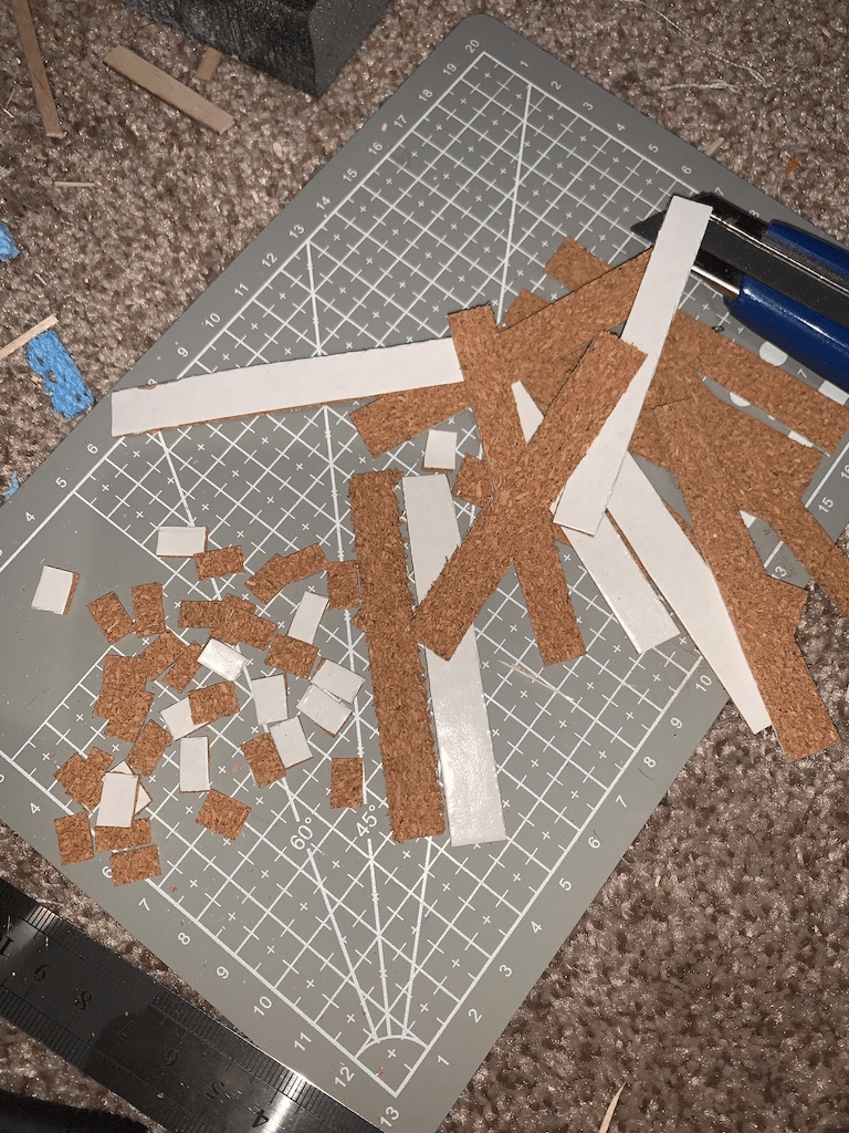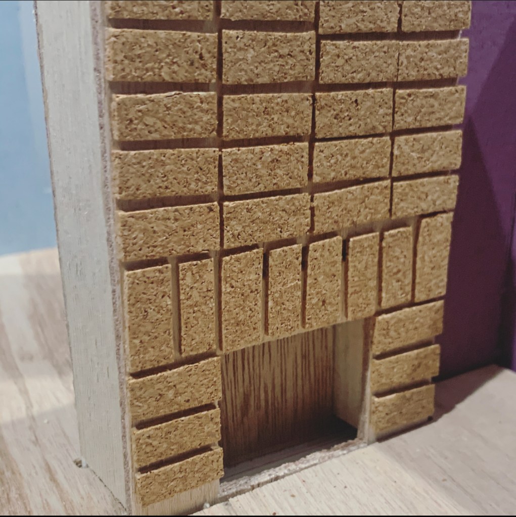 I wanted the fireplaces to have a brick feel to them. I saw on an instagram post that someone used cork to make bricks and they looked really amazing so I tried it.