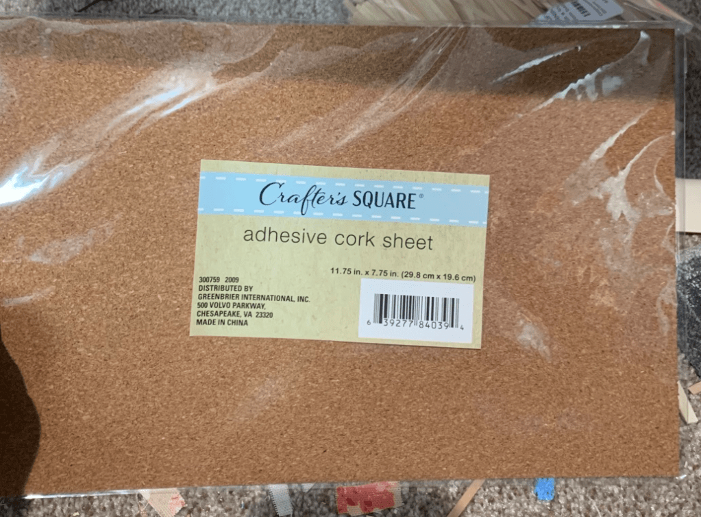 The dollar store (which is increasingly becoming a staple craft item spot) had these adhesive back cork sheets for, you guessed it, $1.